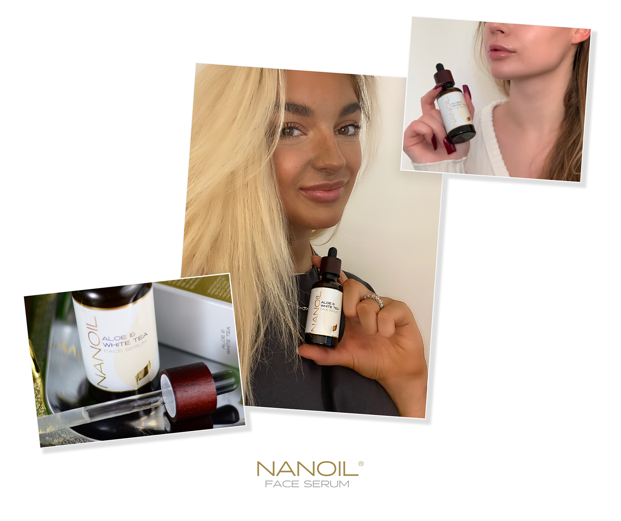 Όλοι οι παραπάνω στόχοι μπορούν να επιτευχθούν με τη χρήση ενός σέρουμ προσώπου με αλόη και λευκό τσάι, από την Nanoil. Δεν είναι δύσκολο! Το προϊόν διαθέτει ένα εύχρηστο γυάλινο σταγονόμετρο – το μόνο που πρέπει να κάνετε είναι να τοποθετήσετε μία σταγόνα ή δύο και να κάνετε μασάζ, σε καθαρό πρόσωπο, πρωί και βράδυ. Αυτή η διαδικασία είναι αναγκαία για την αποκατάσταση της νεανικότητας του δέρματος και τη διατήρηση του αποτελέσματος για περισσότερο καιρό!